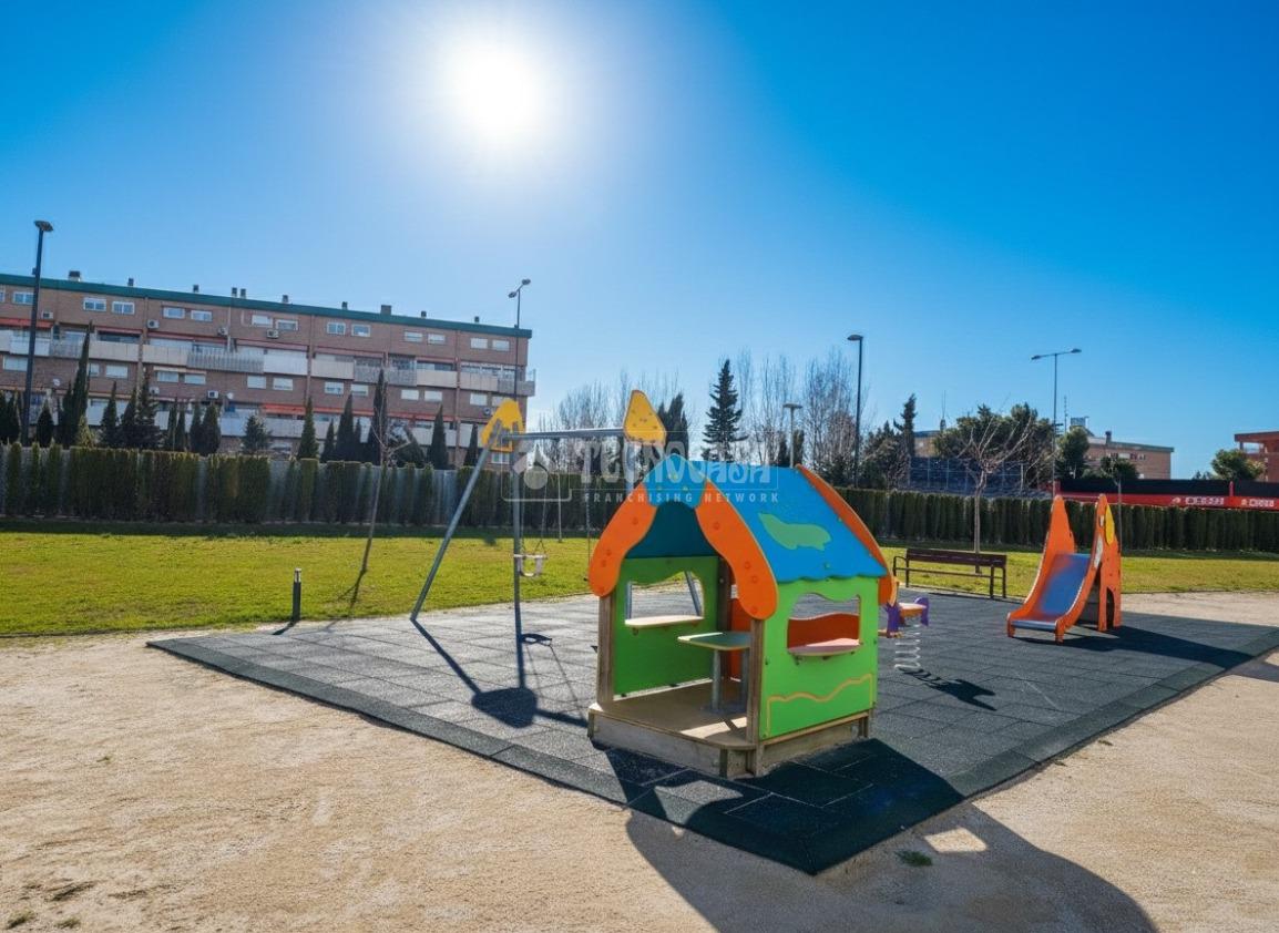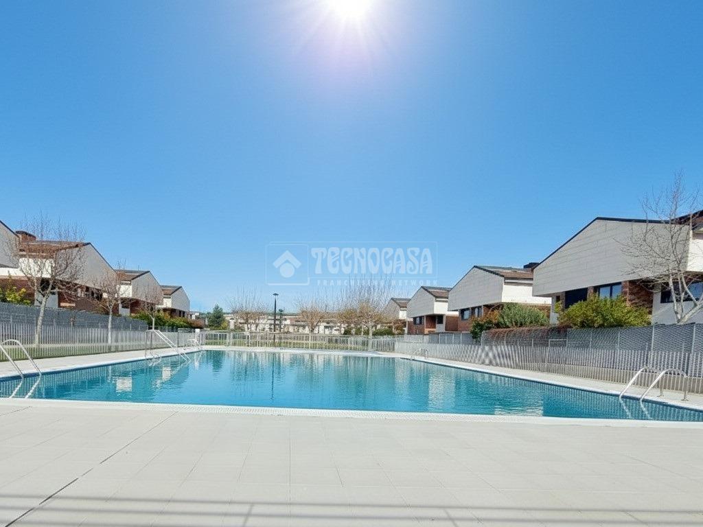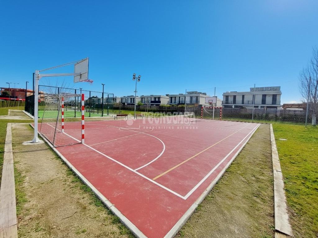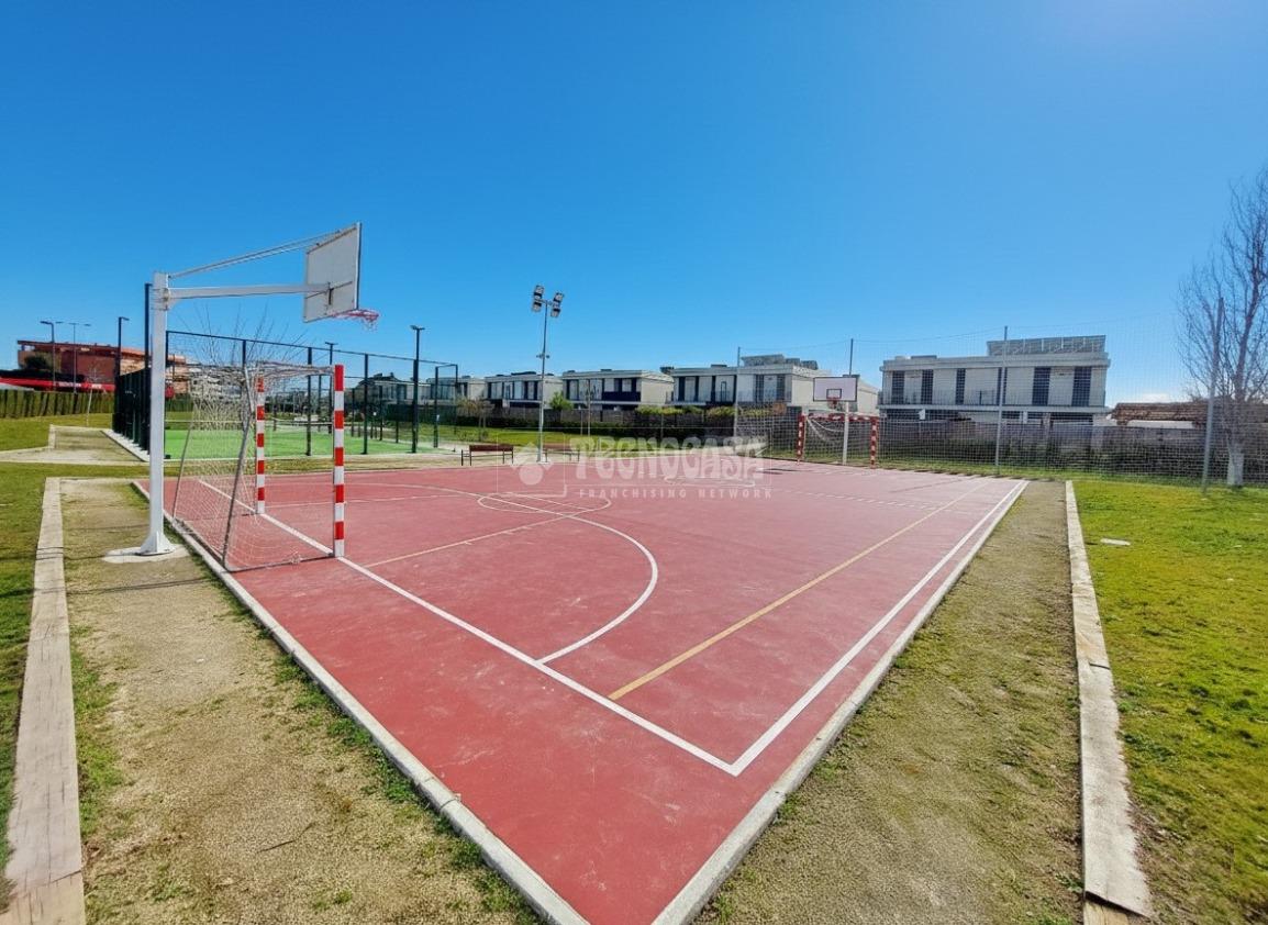 Urbanización con dos piscina una para mayores y otra para niños, zona infantil, pista de pádel, cancha de baloncesto y fútbol y zonas ajardinadas.