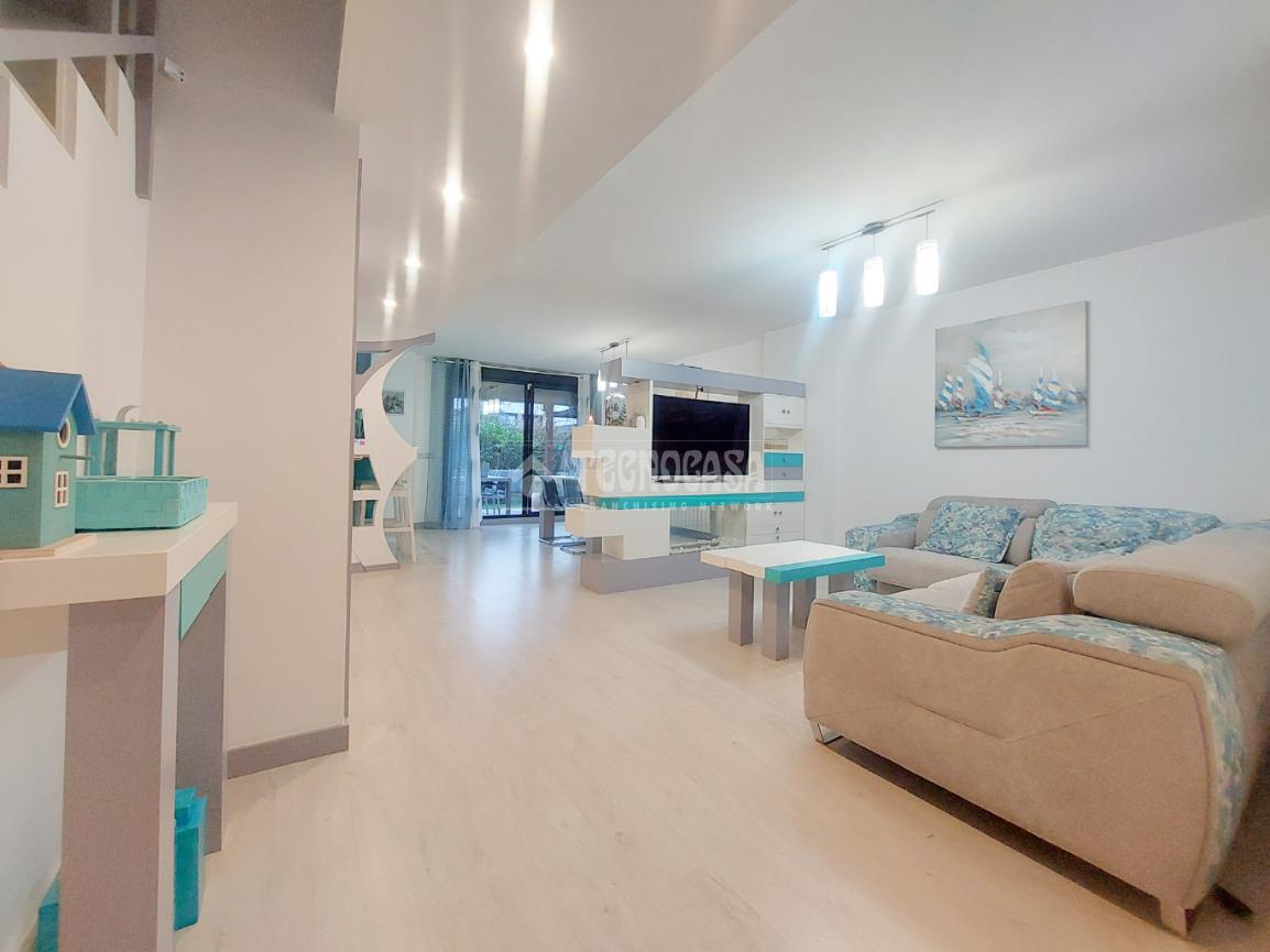 PLANTA BAJA: amplio salón, cocina, dormitorio, aseo, jardín de 60 m², porche de 18 m² y terraza de 30 m².