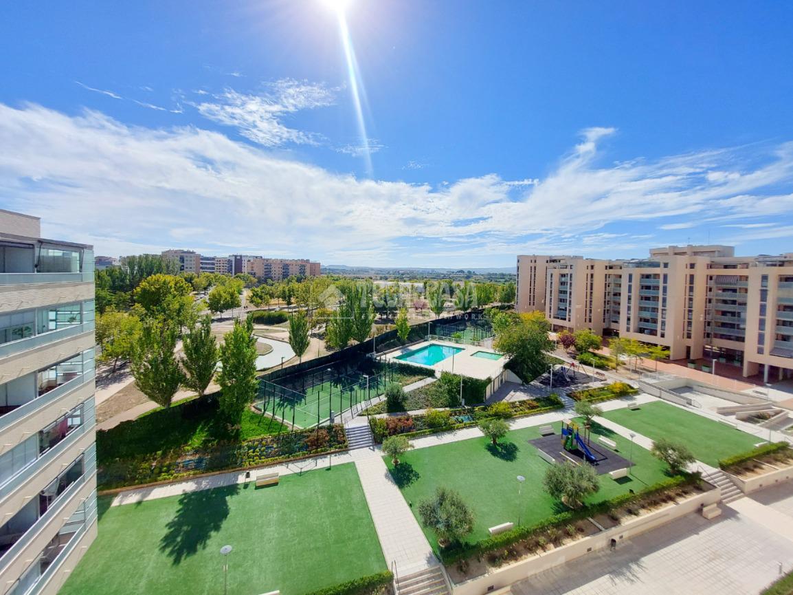 Urbanización con 2 piscinas una infantil y otra para adultos, 2 pistas de pádel, jardines y área de juego infantil.